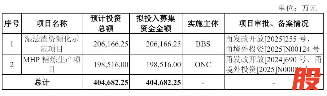 力勤资源计划募资40.47亿元,其中,20.62亿元用于湿法渣资源化示范项目,19.85亿元用于MHP 精炼生产项目。