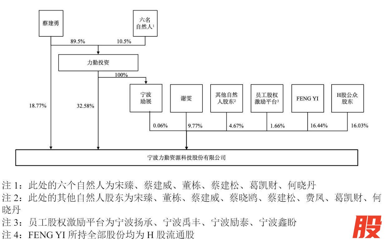 力勤投资持股为32.58%,FENG YI持股为16.44%,谢雯持股为9.77%,宋臻持股为1%,宁波扬承持股为0.84%,董栋、蔡建威分别持股为0.67%,蔡晓鸥持股为0.66%,蔡建松、费凤、葛凯财分别持股为0.5%,宁波禹丰持股为0.47%,宁波励泰持股为0.23%,何晓丹持股为0.17%,宁波鑫盼持股为0.12%,宁波励展持股为0.06%。