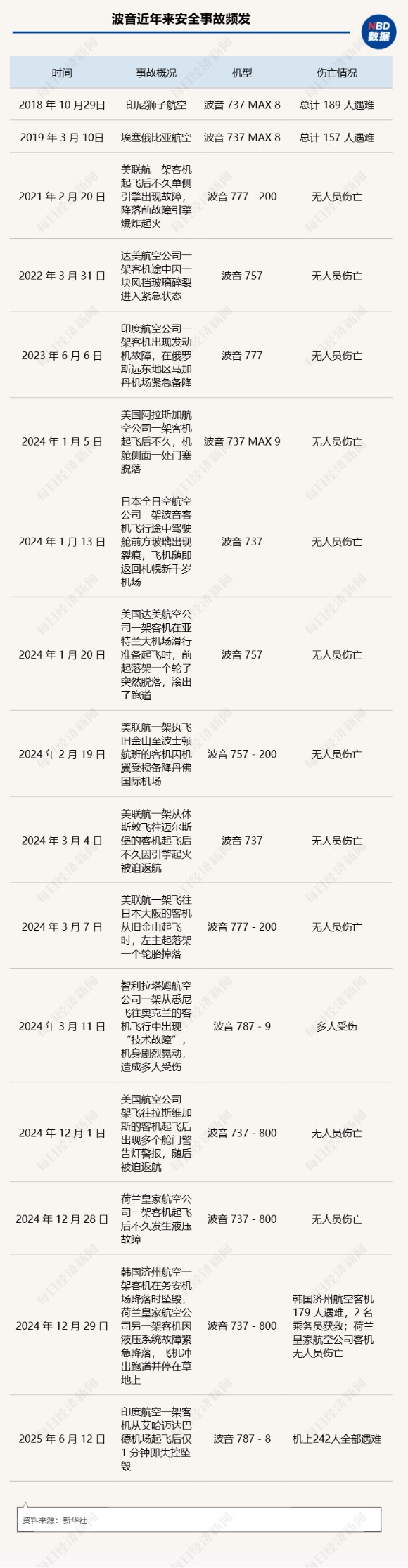 近年来,波音已深陷财务困境。从2019年至2024年,该公司累计亏损高达359.91亿美元,创下其108年历史上的最大六年亏损纪录。这起空难的发生,无疑为波音本已严峻的危机再添阴霾。