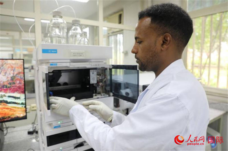在埃塞俄比亚农业局下属的动物产品和投入品质量检测中心,一台台高精度质谱仪、检测设备高速运转。当记者走进检测实验室时,法努埃尔正在进行样品检测。作为一名有着十年经验的质量分析师,他的工作职责是检测肉类样品是否存在兽药、抗生素或非法添加物残留,对肉制品质量进行监控。